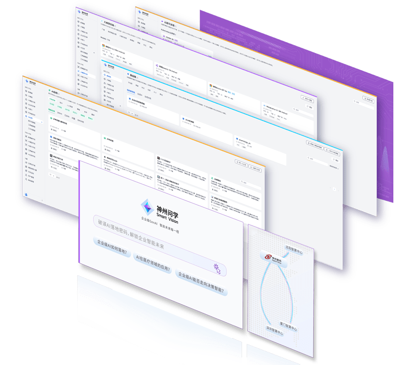 打通GenAI落地企业的算力、、、、模型、、、知识、、、、应用四大要素,,综合解决GenAI工程在选、、练、、、用、、、管四大环节的问题,,,,旨在为企业的数智化转型提供全套的GenAI智能应用工程流水线。。。南宫娱乐问学包括模型算力管理平台、、、、企业私域知识管理平台、、、、AI应用工程平台三大模块,,,,为企业提供更先进、、、、更匹配的大模型,,,,解决了算力上信创适配、、、融合调度、、、企业私域大模型高效推理训练问题,,,同时解决了数据到知识的向量化以及场景应用的轻量化组装问题。。。。